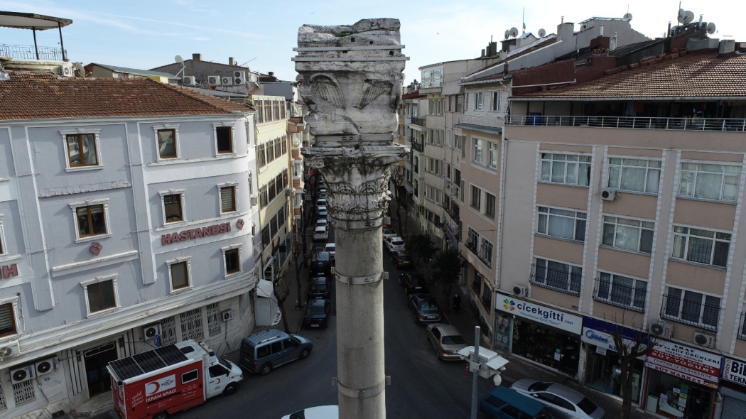 In the Roman Empire, it was customary to erect pillars in the form of monuments. Such monumental columns, most of which had relief decorations, were sometimes erected alone or at the center of the squares they were associated with. In written sources, over forty monuments erected in this way in Istanbul are mentioned. Some of them have survived, while only the location and/or name of some of them are known. The Obelisk, which is among the best-known examples of these columns, most of which were erected between the 4th and 6th centuries, was brought from many kilometers away with great difficulty to decorate the city and the Column of Constantine managed to survive despite several fires and disasters. The Arcadius Column, erected as a victory monument, could not withstand lightnings and collapsed over the years. Another of these columns, which has been raising people’s heads towards the sky for centuries, is Column of the Maiden, which has been the subject of legends due to its name. Located in our Fatih district, the other name Column of the Maiden, which gave its name to the district and the Street is known as Column of the Marcian. The column was erected in the 5th century A.D. by Preafectus (Governor) Tatiaus on behalf of Emperor Marcian [450-457] as a monument consisting of four parts as pedestal, column, head and statue. Although there is no clear information about erection of the column, which is thought to be erected in the middle of a square and the disappearance of the statue on it, there are different theses put forward by the researchers. Some researchers state that the statue, which is considered to be at the top of the column, belongs to the Emperor Marcian and that this statue was dismantled and taken away during the Latin Invasion (1204 - 1261). The column with a total height of 16.5 meters in its current form consists of a base and head section of approximately 4 meters each and an 8.5 meter solid gray granite body in the middle of them. There is a six-armed cross in the wreath on three surfaces of the block marble plinth on the three-step marble base. To the north of the pedestal, two figures of the Goddess of Victory (Nike) bear a six-armed cross in a flowered circle. During the Ottoman Period, the monument was called “Column of the Maiden” due to these reliefs. Just above these reliefs, there is an epitaph, which is known to consist of bronze and lead letters, but today only the holes to which the metal letters were attached can be seen. On the monoblock granite column rising on the pedestal, there is a marble Corinthian headboard and a pedestal on which sits the statue with eagle reliefs on each corner. The Latin inscription and text translation, traces of which can be seen today, are as follows: “Principis Hanc Statvam Marciani Cerne Torvuqve Praefectus Vovit Qvod Tatianus – Keep your eyes on this statue, which was commissioned by the Governor Tatianus for his lord Marcian.” After the conquest of Istanbul, Column of the Maiden remained undamaged and in a private garden among the mansions in the district that developed around it over the years. French traveler Pierre Gilles first mentioned the column, which was overlooked by travelers for a long time, in 1540 without giving full information. A picture of the column and the first detailed information about it were published in 1679 by Jacob Spon and George Wheler. At the same time, our famous traveler and historian Evliya Çelebi also referred to the column as “a talismanic column reaching the sky in Saraçhanebaşı”. The monument was completely exposed when the surrounding structures burned in the 1908 fire at Çırçır area. Column of the Maiden still preserves its original appearance and forms the focal point of a square as it did in the past. The cleaning and maintenance-repair of the column will be carried out in the coming months by the Masonry Construction and Artifact Workshop, which serves under the Cultural Heritage Protection Directorate of our Municipality. After the pollution and vegetation on the surface of the column are cleaned with appropriate methods, its landscaping will be carried out in line with the restoration projects approved by the Conservation Board.