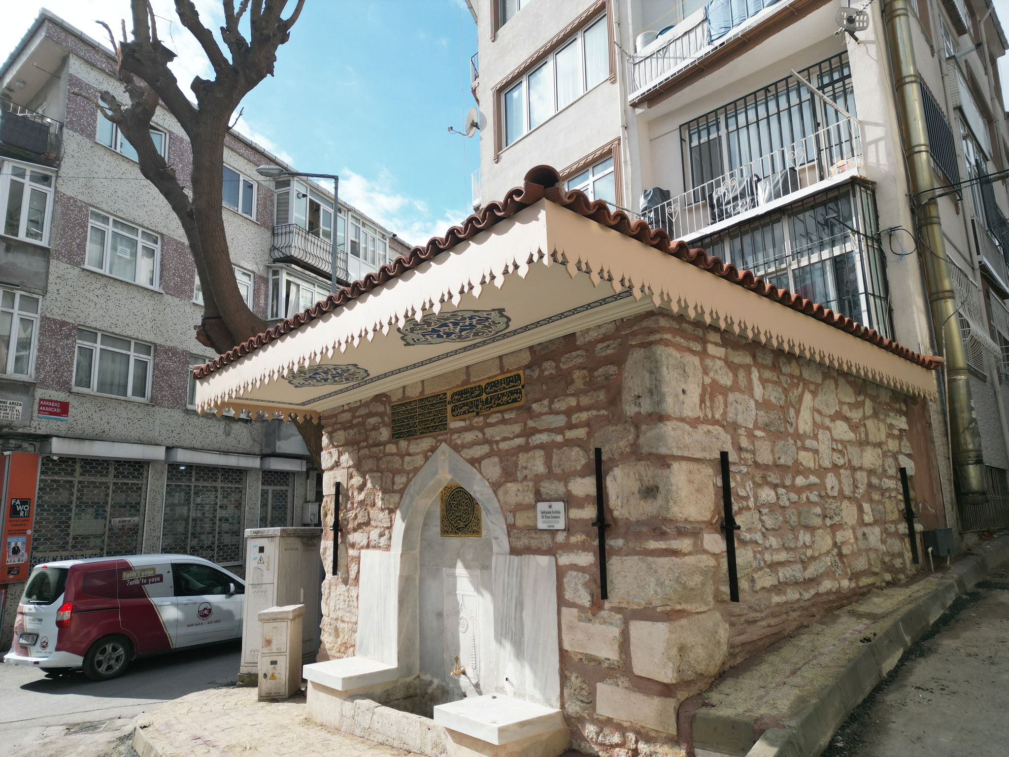 In the scope of restoration works, cement-based materials and foul junctures were removed from the fountain, joints were built and with cleaning operations the facade was repaired. While the necessary parts of the fountain’s original basins and benches were repaired, the missing parts were constructed in line with the original structure. The concrete dome and eaves on the top cover of the fountain were removed and built using a wooden frame. The decorations and dentils on the eaves were remanufactured in accordance with archive photographs. The top cover was covered with tiles instead of lead, for security reasons. After the cleaning and coloring works on the inscriptions, it was ornamented with gold leaf and connected to tap water.