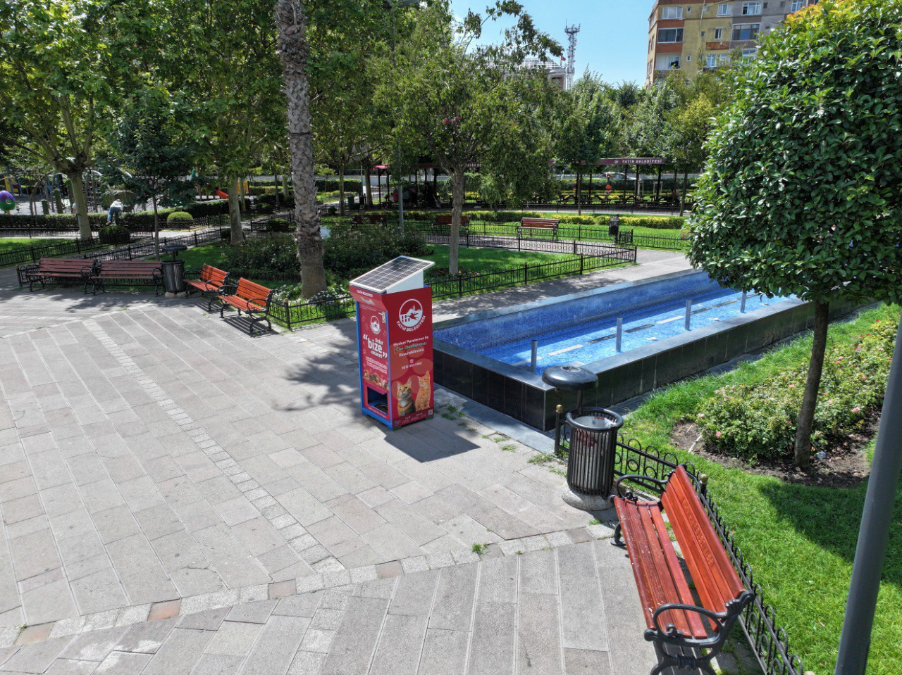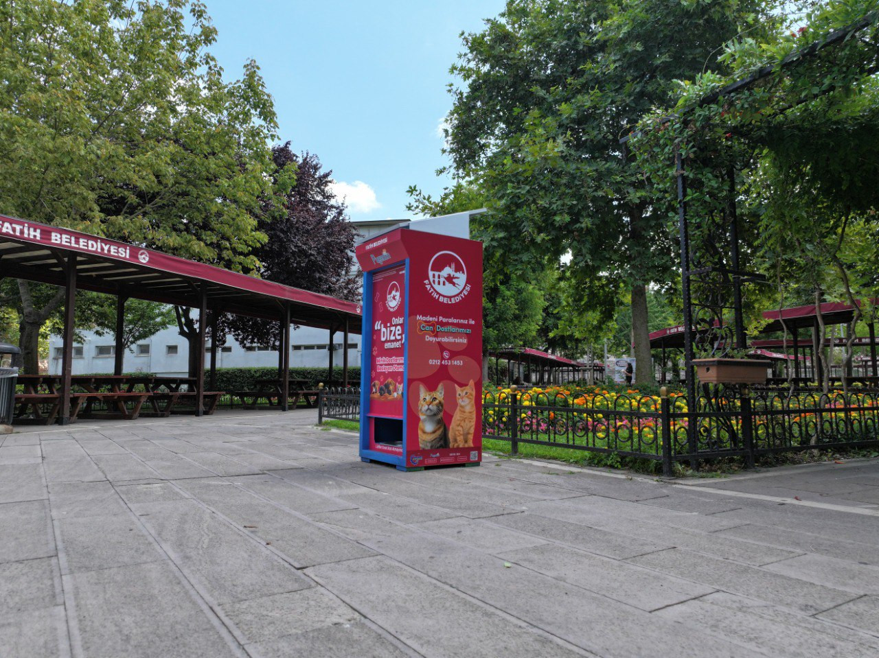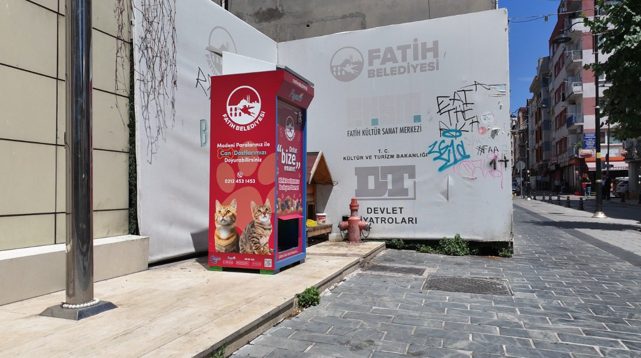Fatih Municipality placed new generation smart Food-Matics at various points of the district for street animals. These Food-Matics both attract attention with their modern design and provide regular food for stray animals.