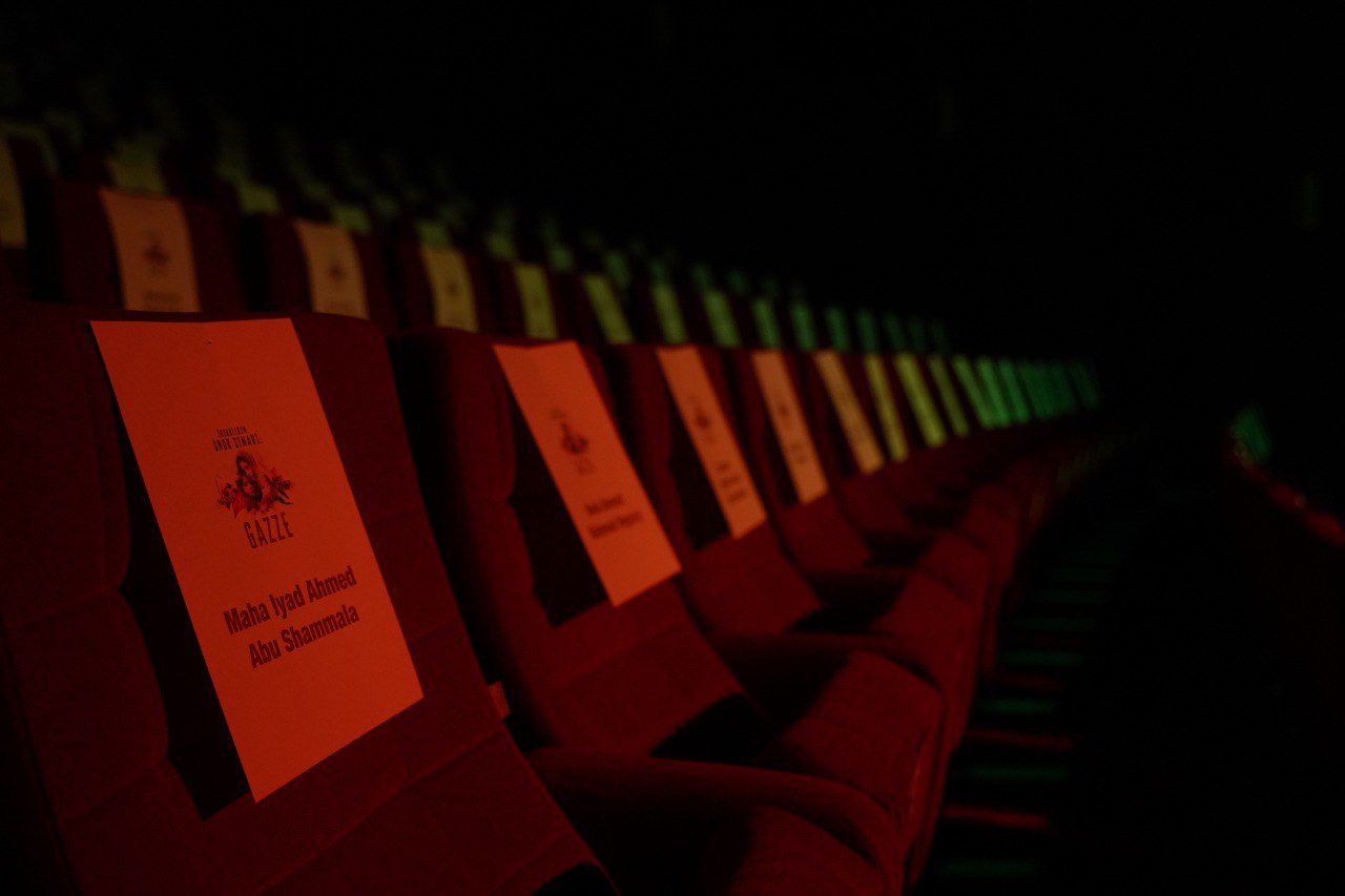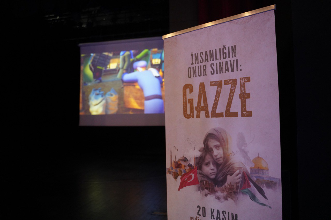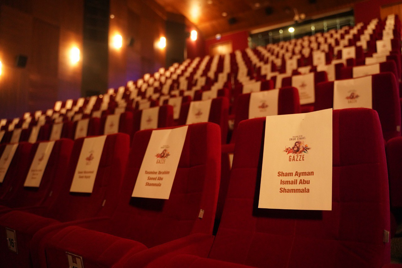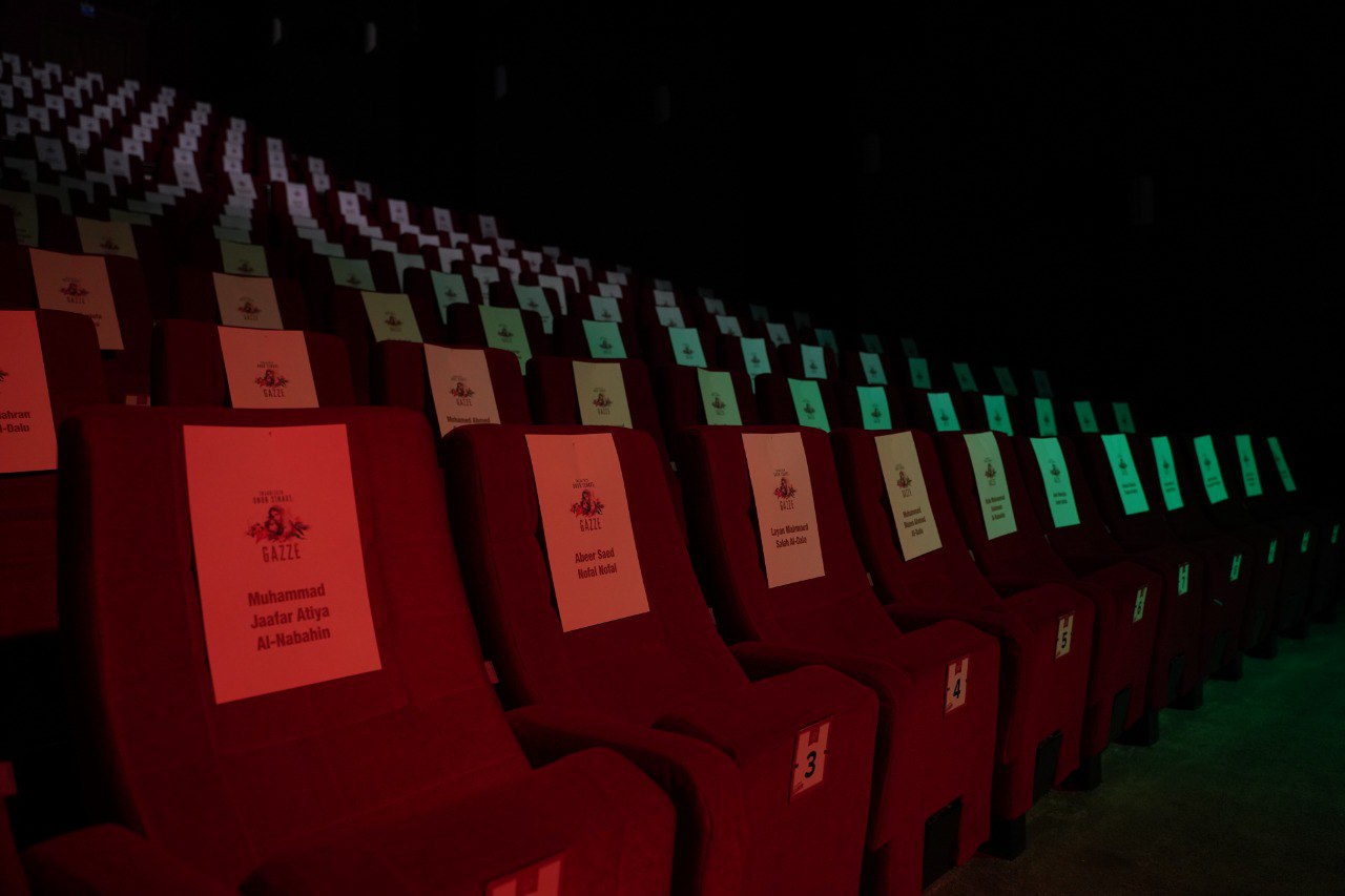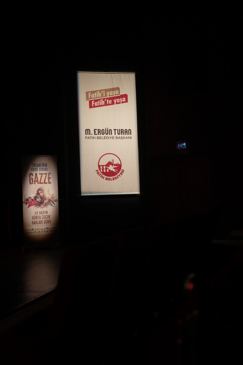 District Municipalities of Istanbul are organizing a series of activities including many cultural activities such as conferences, interviews, theater play and movie screenings, concerts, panels, poetry recitation, contests, and symposia between November 20th – December 30th, 2023 titled “Humanity’s Test of Honor: Gaza” in order to capture attention to the genocide that has been continuing in Gaza since October 7th. The first of these activities was organized on World Children’s Day. Calling for attention to the occupation where children are massacred or orphaned, the municipalities came together for innocent children that are massacred in Palestine and especially in Gaza and organized a joint activity for the martyr children. The Municipalities made a simultaneous screening of the cartoon titled “Foal” at empty halls carrying names of martyred children at culture centers in 25 districts. Fatih Municipality organized this activity at Fatih Culture and Arts Center. No viewers were accepted from the outside to the screening where all seats carried names of children massacred in Gaza.