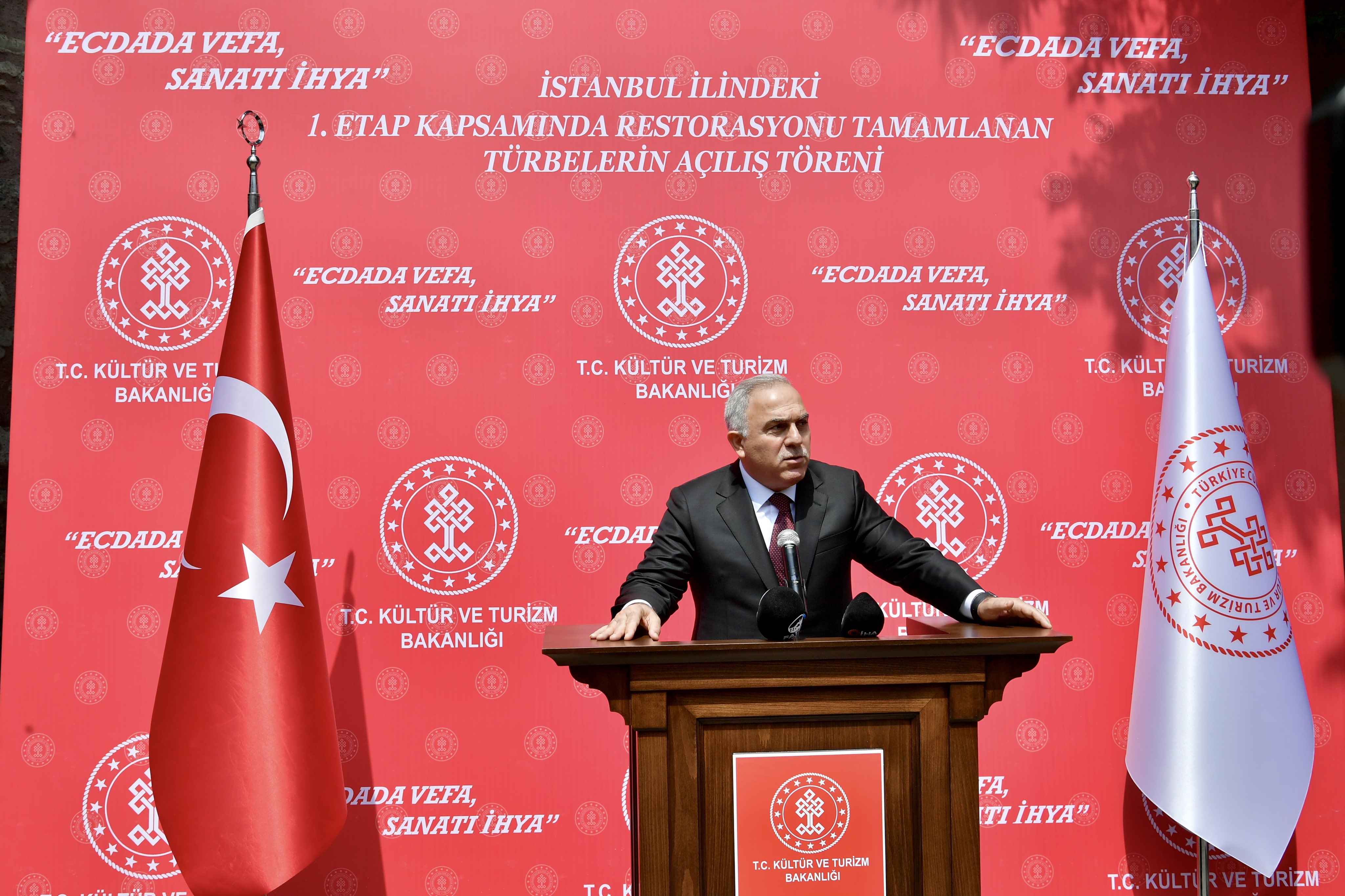 The Ministry of Culture and Tourism has completed the restoration of 39 tombs in İstanbul within the scope of the 1st stage of the project "Respect to Our Ancestors, and the Revival of Art". Fatih Mayor M. Ergün Turan delivered a speech at the ceremony, which was also attended by Ahmet Misbah Demircan, the Deputy Minister of Culture and Tourism, Cafer Sarılı, the District Governor of Fatih and Coşkun Yılmaz, the Provincial Director of Culture and Tourism of İstanbul.