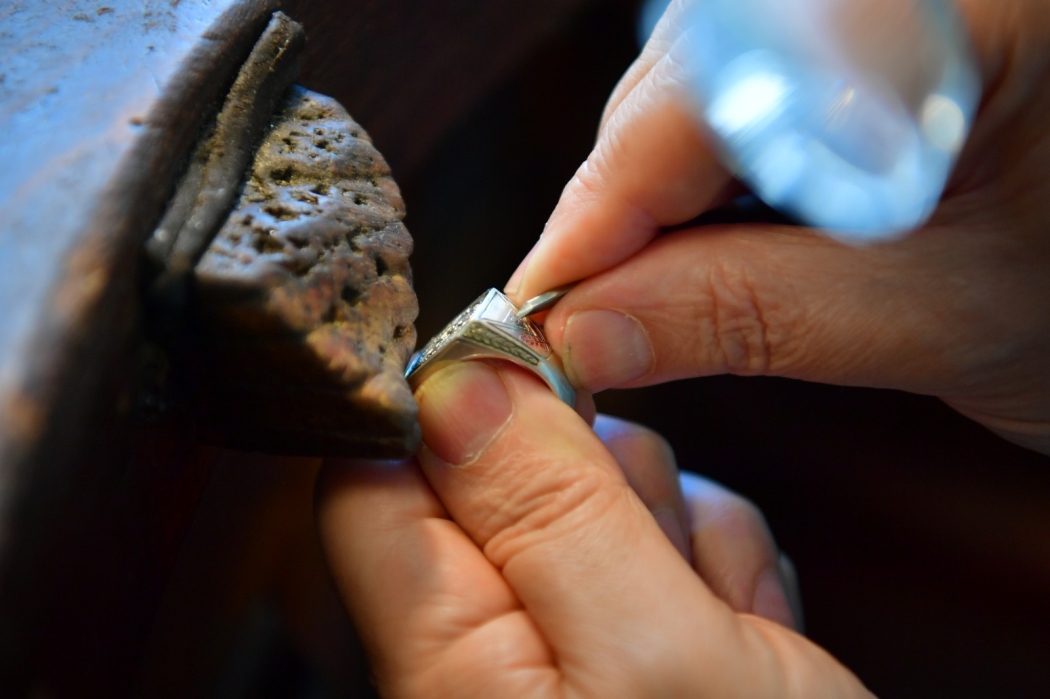 The most distinct definition of this profession would be to say it requires a lot of delicacy. It is just like how you pass a bridge carelessly but after you pass you turn around and say “How did I pass this?” 1 millimeter equals 100 microns. Think of every micron as 100 layers. You cannot use 40 of those layers. This work is done by working on the 60 microns on the top. It is that delicate and difficult to even explain. The biggest difficulty is the fact that object used is small while the engraving is complicated. Thus, it required very meticulous work. Hand engraving does not tolerate any errors. Because the object that are worked on are usually precious stones. This requires a sensitive work process. Every product is unique. It is not possible to replicate a product that is prepared with thousands of pen strokes.