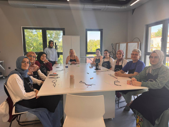 Vatandaşlarımız, KARINCA Eğitim Birimi'nin Hekimoğlu'ndaki Makrome Bileklik Atölyesi'nde Kendi Tasarımlarını Oluşturuyor