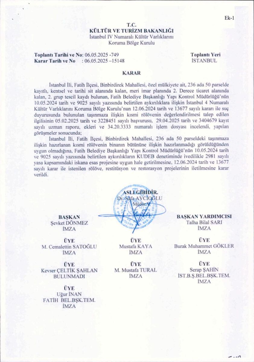 236 ada 50 parsele İlişkin kurul kararı