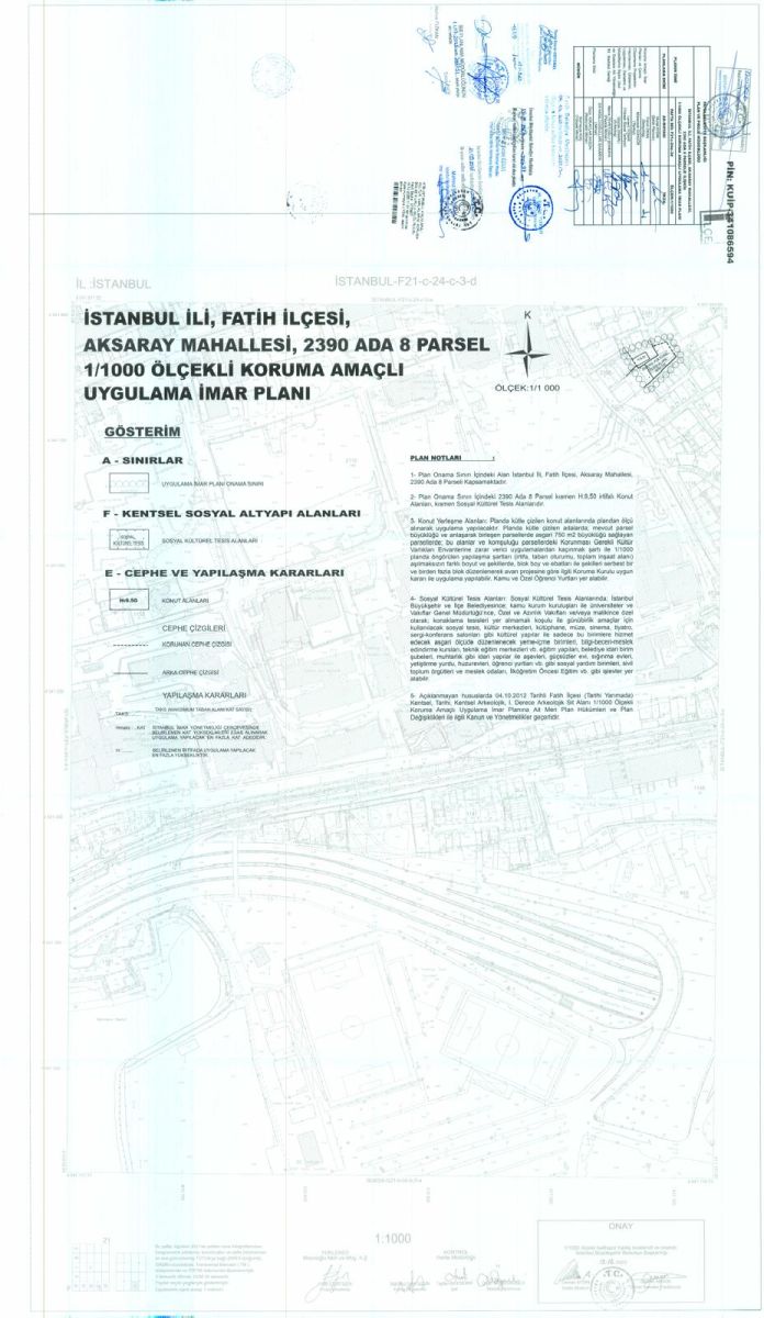 İstanbul İli, Fatih İlçesi, Aksaray Mahallesi, 2390 Ada 8 Parsele İlişkin KUİP-341086594 Plan İşlem Numaralı 1/1000 ölçekli Koruma Amaçlı Uygulama İmar Planı Değişikliği
