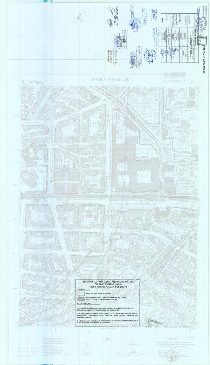 İstanbul İli, Fatih İlçesi, Nişanca Mahallesi, 737 Ada 7 Parsele İlişkin KUİP-341086586 Plan İşlem Numaralı 1/1000 ölçekli Koruma Amaçlı Uygulama İmar Planı Değişikliği 15.12.2025 tarihinde İstanbul Büyükşehir Belediye Başkanınca onanmıştır.
