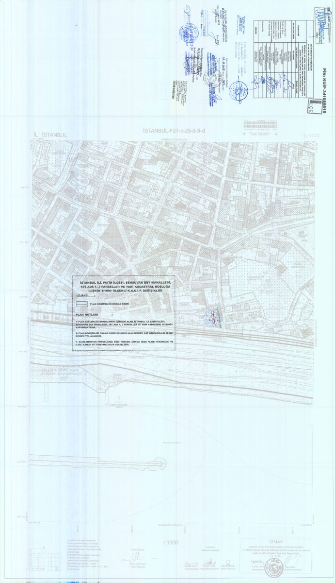 Plan değişikliğine ilişkin pafta 06.01.2026 tarihinde bir ay süre ile Fatih Belediye Başkanlığı Plan ve Proje Müdürlüğü koridorlarında askıya asılmıştır. İtirazlar Fatih Belediye Başkanlığı Plan ve Proje Müdürlüğüne yapılabilecektir.