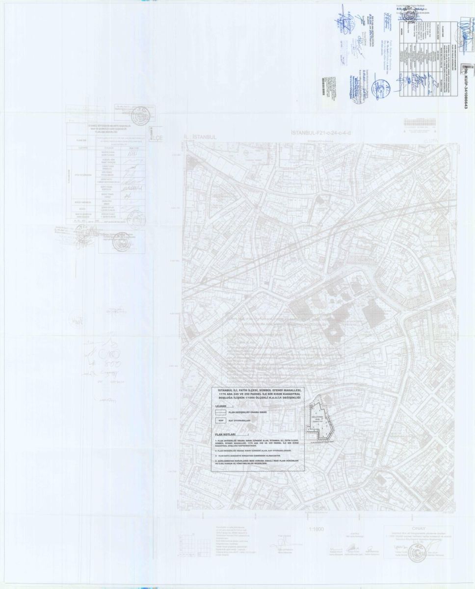 İstanbul İli, Fatih İlçesi, Sümbül Efendi Mahallesi, 1176 Ada 249 ve 250 Parsel İle Bir Kısım Kadastral Boşluğa İlişkin KUİP-341086643 Plan İşlem Numaralı 1/1000 ölçekli Koruma Amaçlı Uygulama İmar Planı Değişikliği