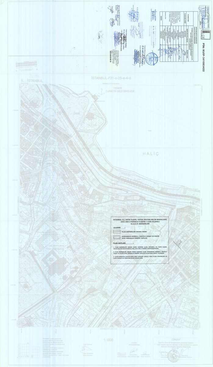 İstanbul İli, Fatih İlçesi, Yavuz Sultan Selim Mahallesi, 2253 Ada 2 Parsele İlişkin KUİP-341083422 Plan İşlem Numaralı 1/1000 ölçekli Koruma Amaçlı Uygulama İmar Planı Değişikliği 21.10.2025 tarihinde İstanbul Büyükşehir Belediye Başkanınca onanmıştır.