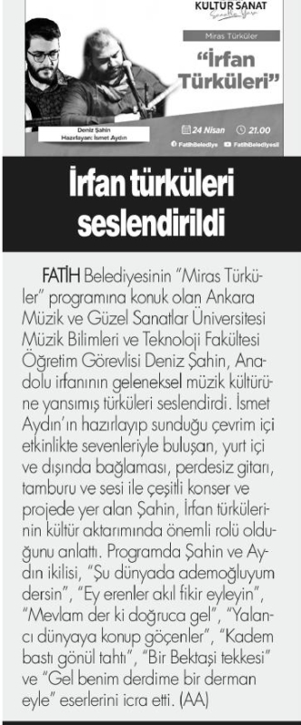 İrfan Türküleri Seslendirildi 28.4.2021 - Günboyu Gazetesi