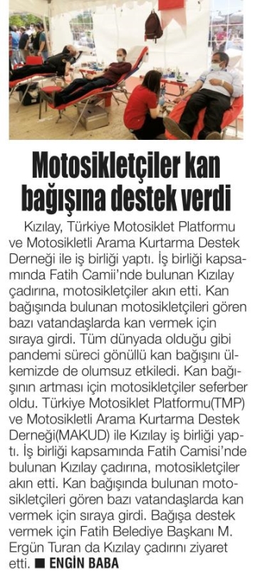 Motosikletçiler Kan Bağışına Destek Verdi 16.5.2021 - Son Saat Gazetesi