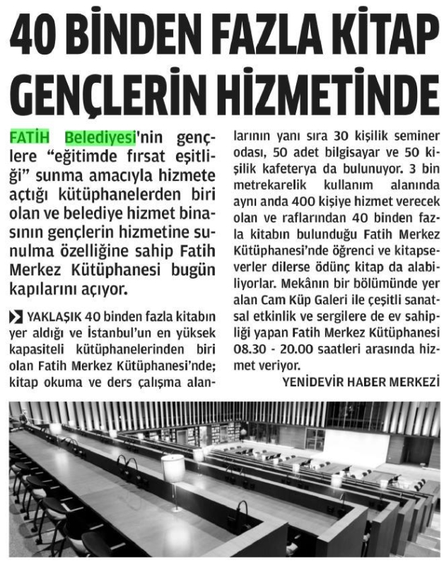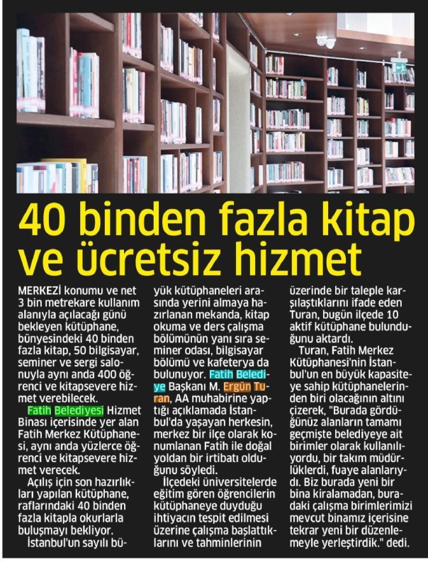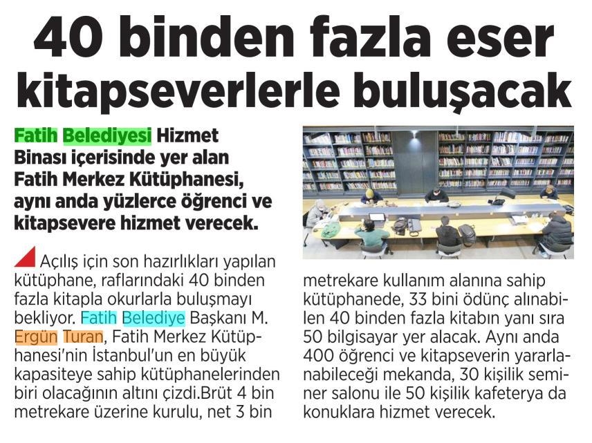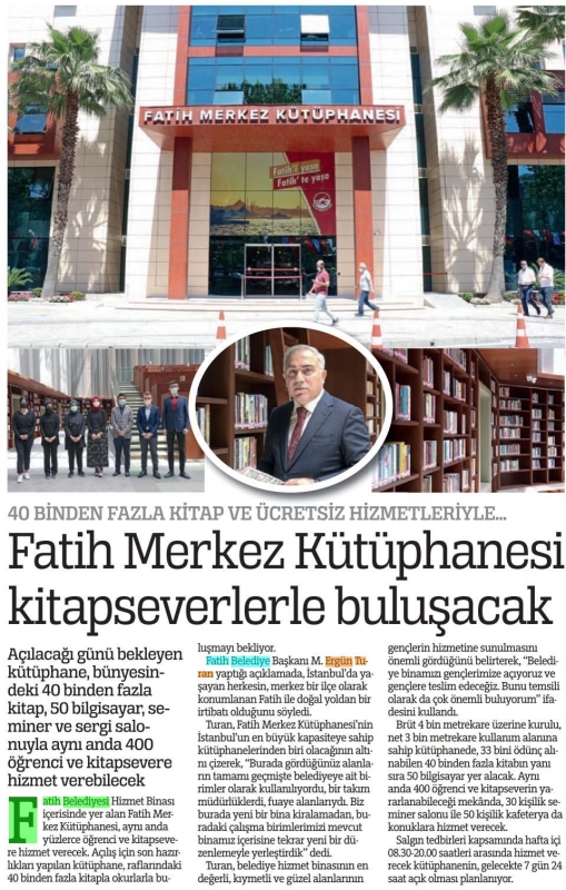 Fatih Merkez Kütüphanesi Kitapseverlerle Buluşacak 28.5.2021 - Türkiye Gazetesi