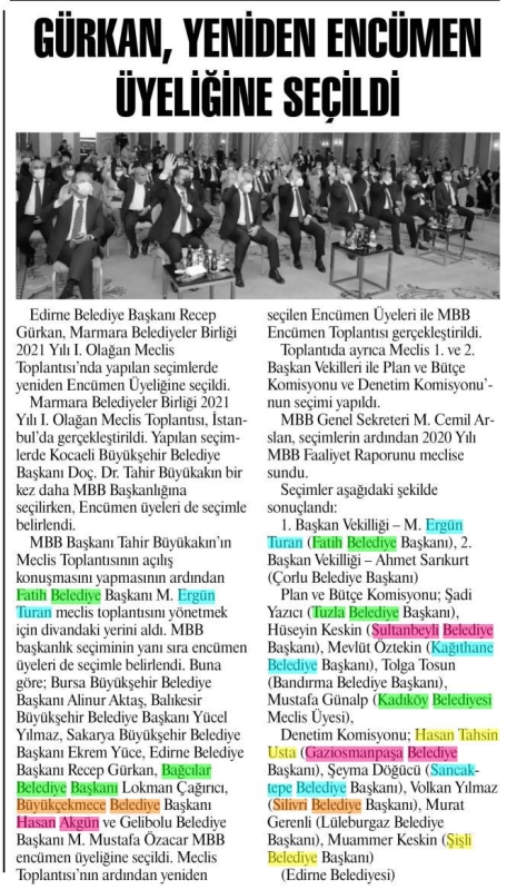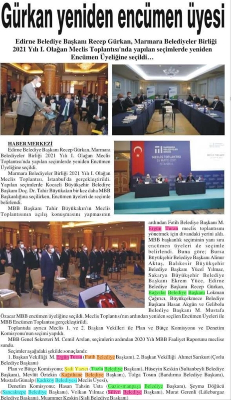 Gürkan Yeniden Encümen Üyeliğine Seçildi 28.5.2021 - Kırklareli Gazetesi