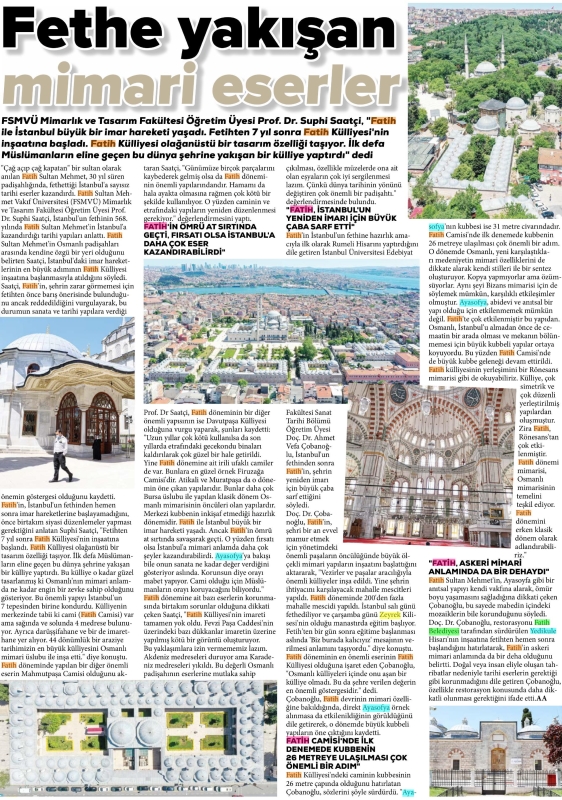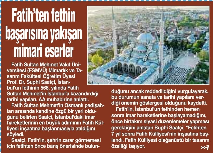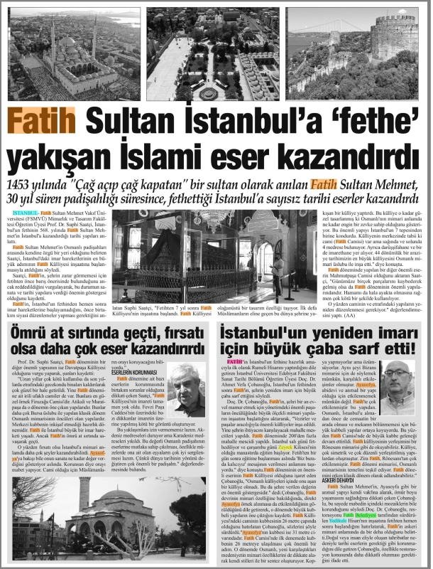 Fatih Sultan İstanbul'a 'Fethe' Yakışan İslami Eserler Kazandırdı 1.6.2021 - Bizim Anadolu Gazetesi