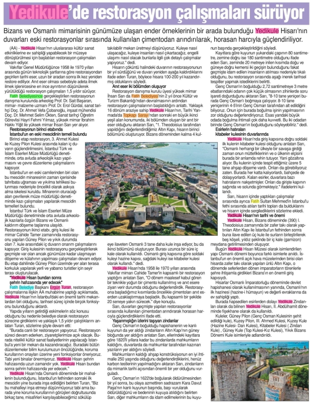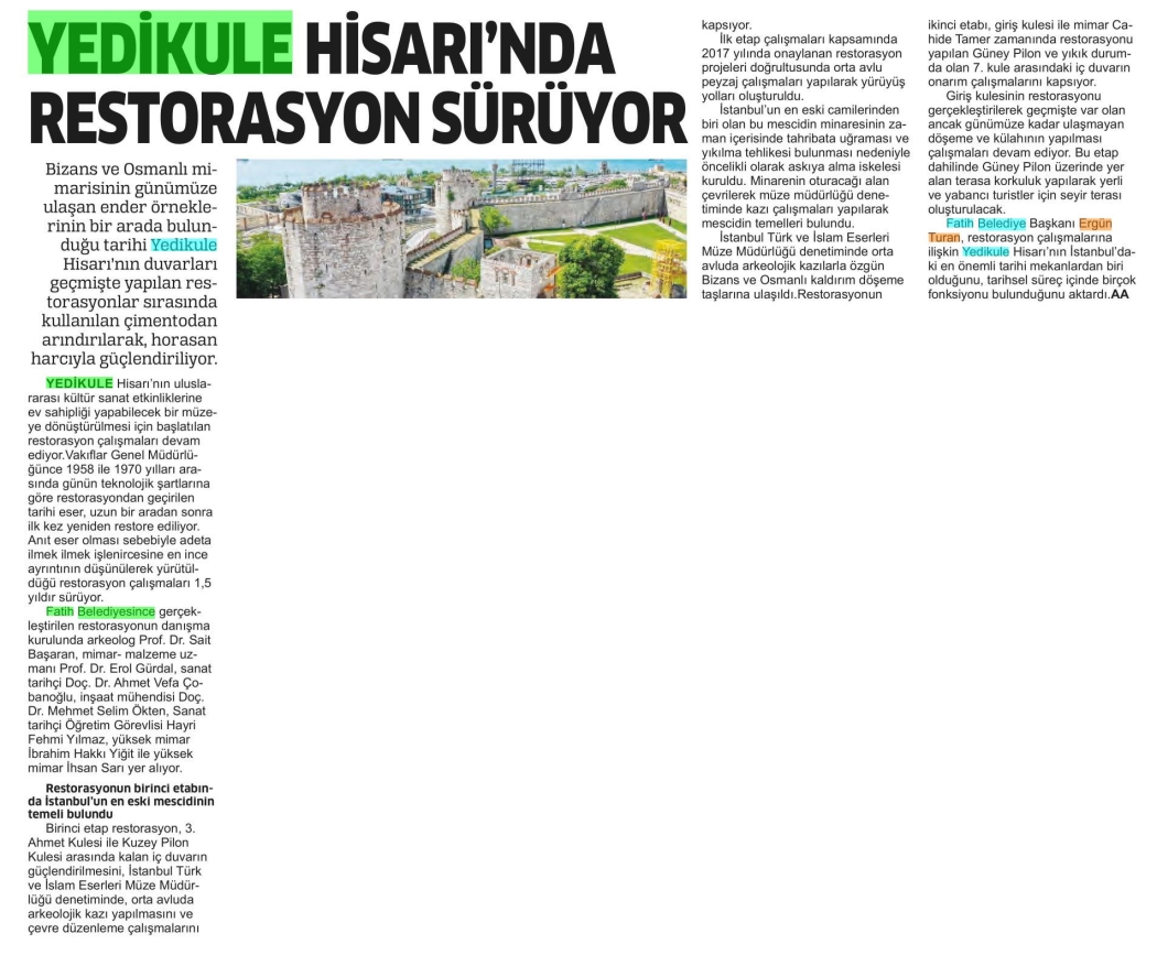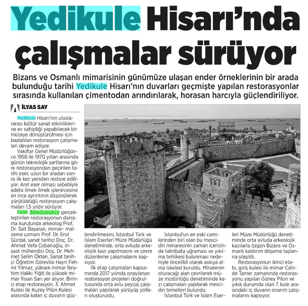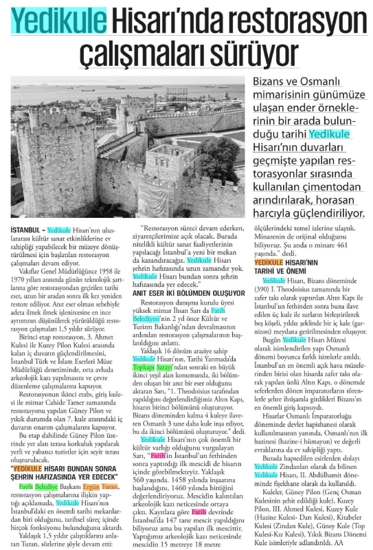 Zamana Meydan Okuyan Yedikule Hisarı'nda Restorasyon Çalışmaları Sürüyor 5.6.2021 - Yenigün Gazetesi
