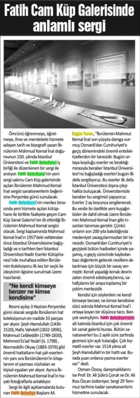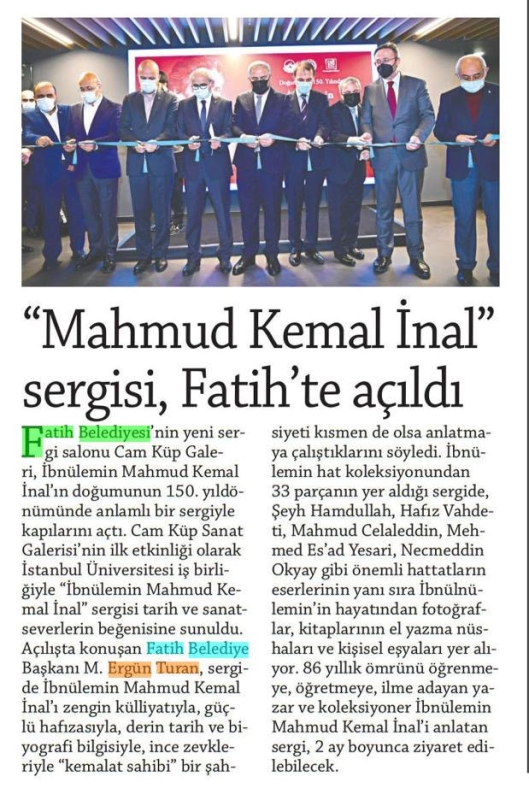'İbnülemin Mahmud Kemal İnal' Sergisi Fatih'te Açıldı 5.6.2021 - Milat Gazetesi