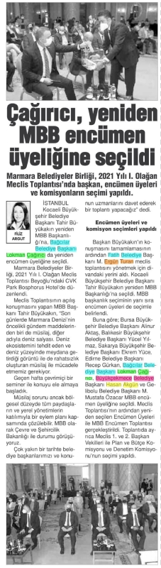 Çağrıcı Yeniden MBB Encümen Üyeliğine Seçildi 2.6.2021 - Önce Vatan Gazetesi