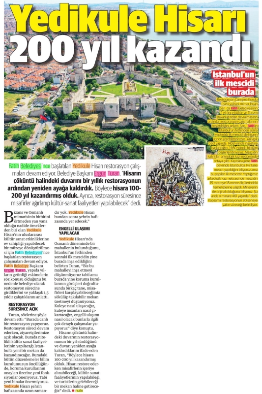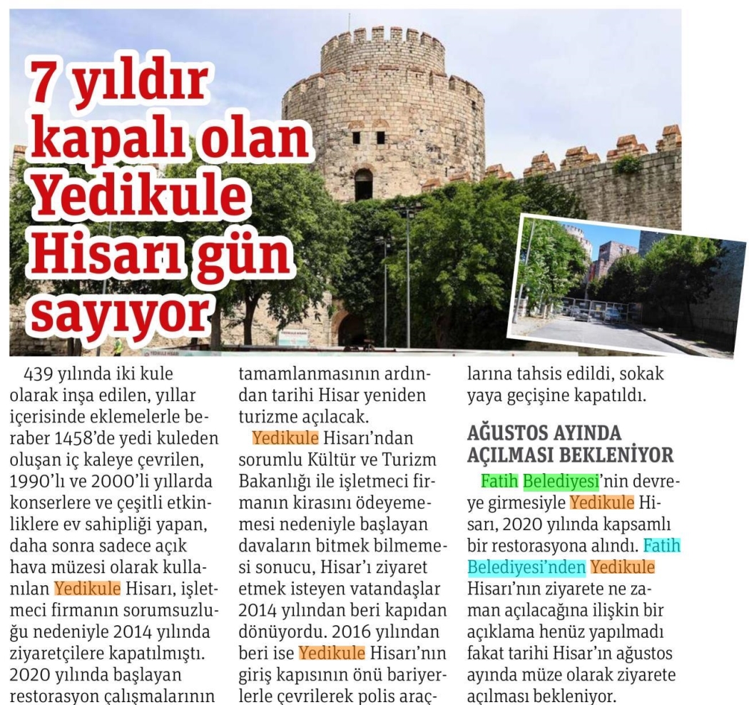 Yedikule Hisarı 200 Yıl Kazandı 2.6.2021 - Yeni Şafak Gazetesi