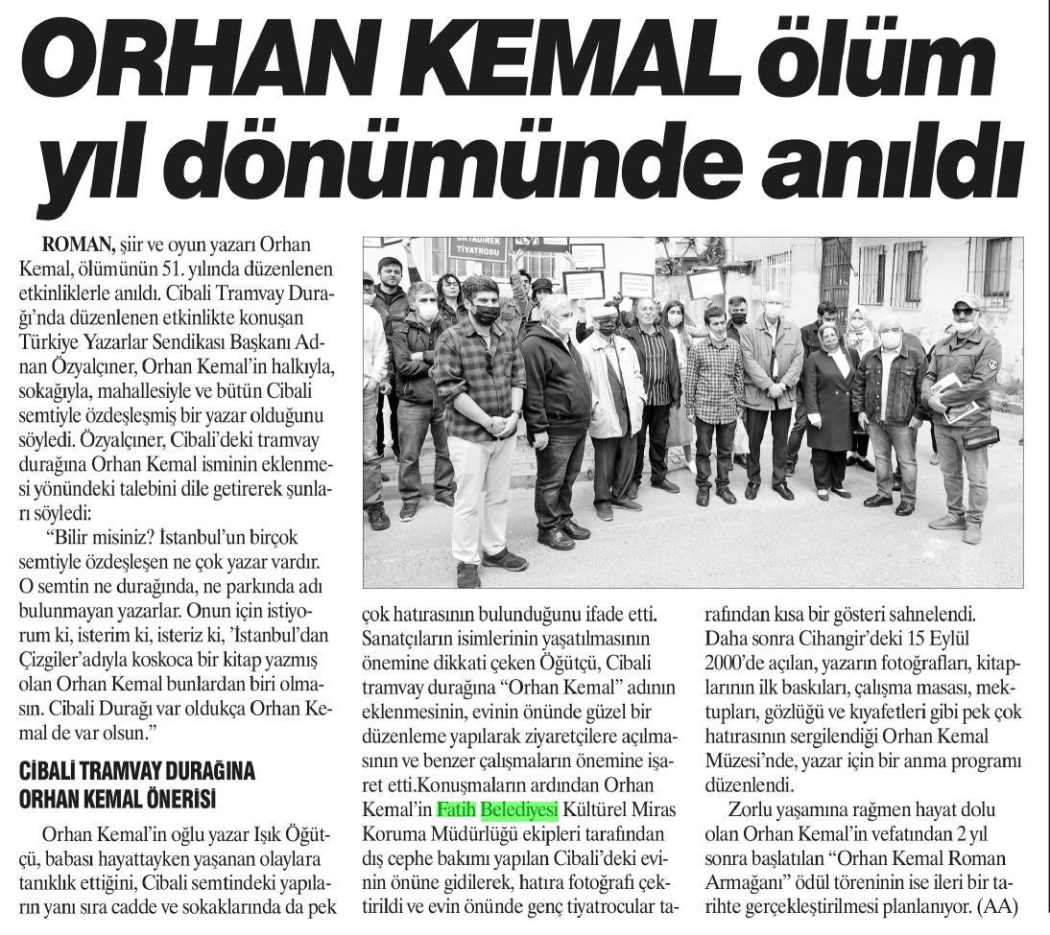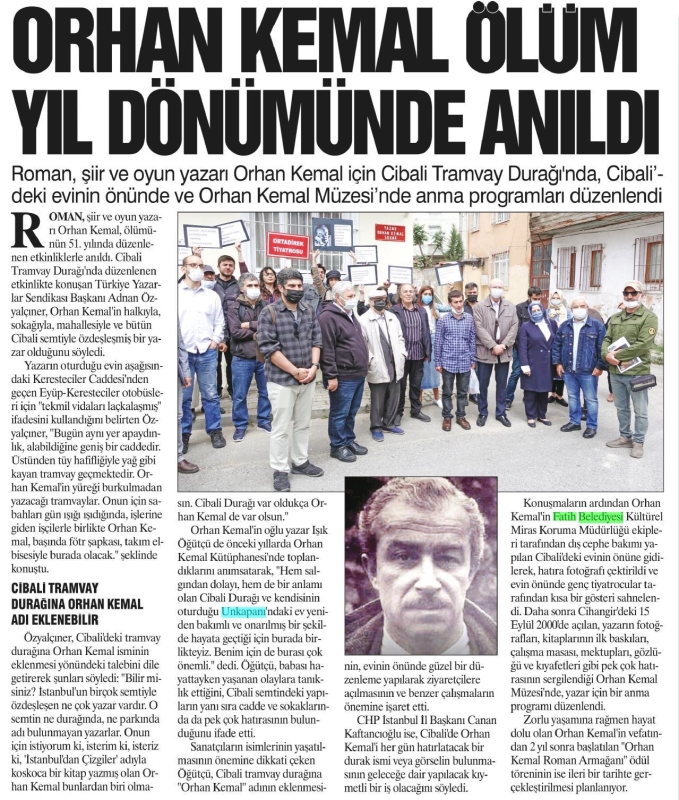 Orhan Kemal Ölüm Yıl Dönümünde Anıldı 5.6.2021 - Günboyu Gazetesi