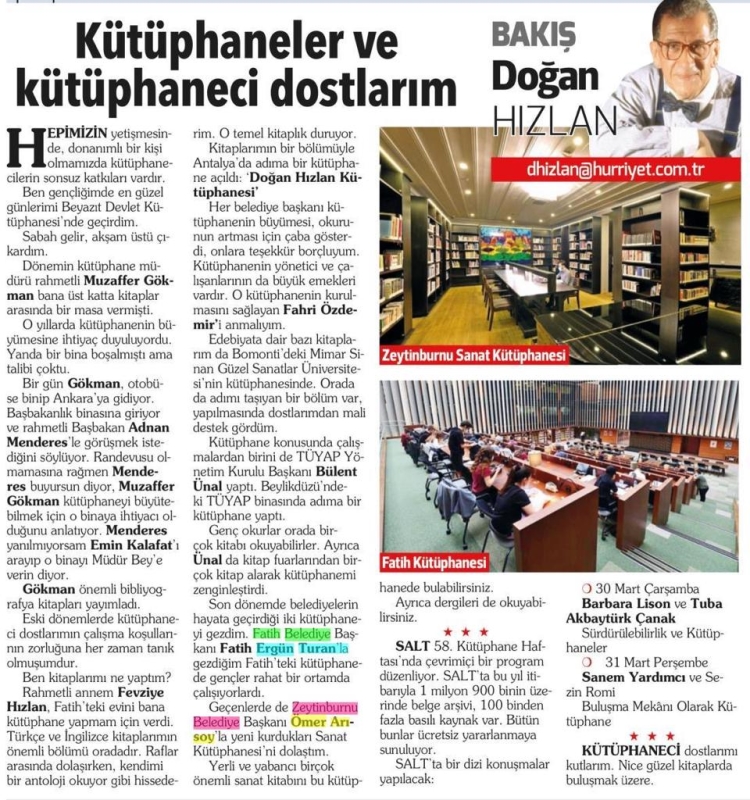 Kütüphane Destanı 26.3.2022 - Hürriyet Gazetesi