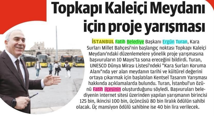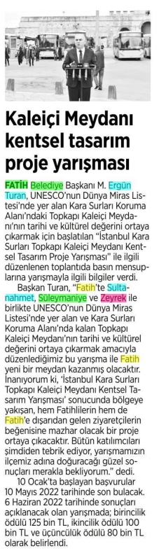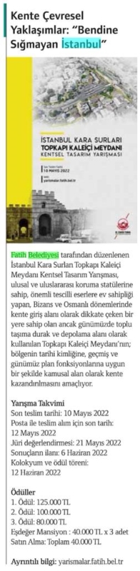Topkapı Kaleiçi Meydanı İçin Proje Yarışması 22.2.2022 - Milat Gazetesi