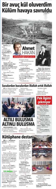 Kütüphaneler ve Kütüphaneci Dostlarım 25.3.2022 - Hürriyet Gazetesi