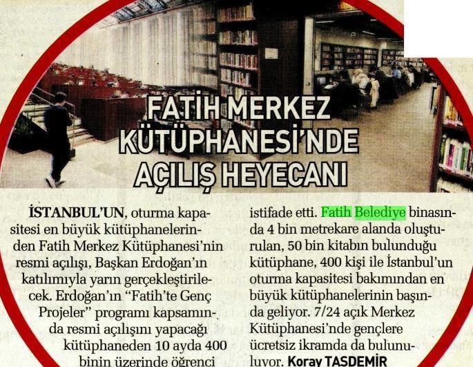 Fatih Merkez Kütüphanesi'nde Açılış Heyecanı 31.3.2022 - Sabah Gazetesi