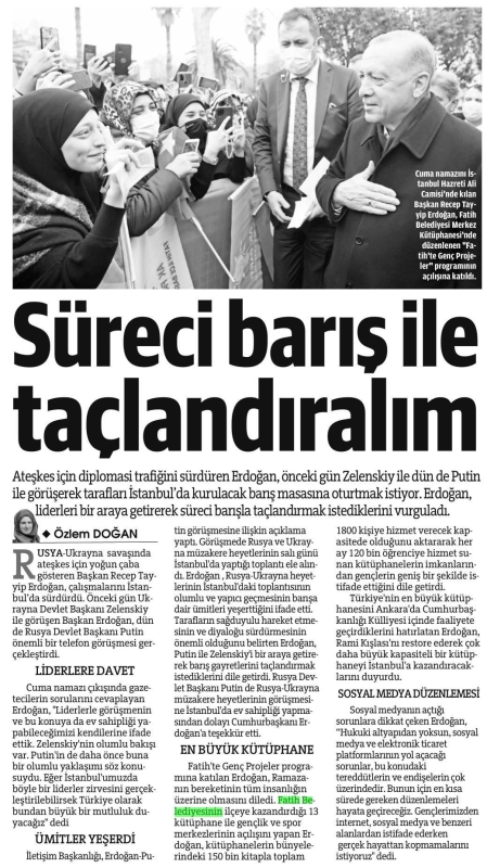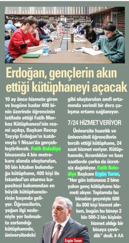 Erdoğan, Gençlerin Akın Ettiği Kütüphaneyi Açacak 31.3.2022 - Akşam Gazetesi