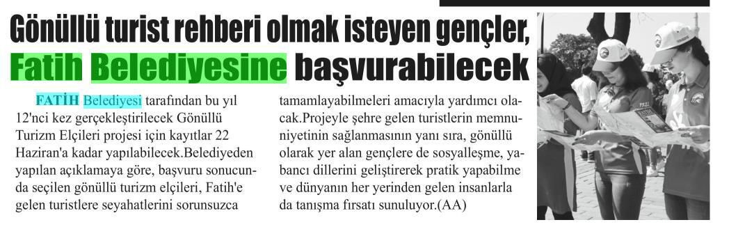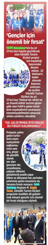 Gönüllü Turist Rehberi Olmak İsteyen Gençler, Fatih Belediyesine Başvurabilecek 27.5.2022 - Yenigün Gazetesi