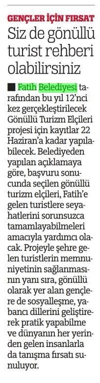 Siz de Gönüllü Turist Rehberi Olabilirsiniz 27.5.2022 - Türkiye Gazetesi