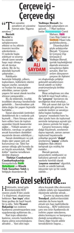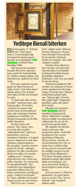 Yeditepe Bienali Biterken 28.2.2022 - Yeni Şafak Gazetesi