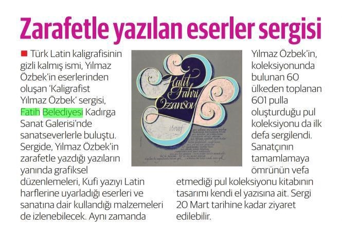 Zarafetle Yazılan Eserler Sergisi 1.3.2022 - Yeni Şafak Gazetesi