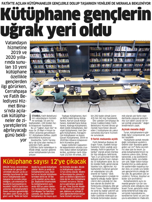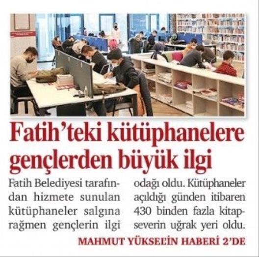 Fatih Merkez Kütüphanesi Kitapseverlerle Buluşacak 28.5.2021 - Türkiye Gazetesi