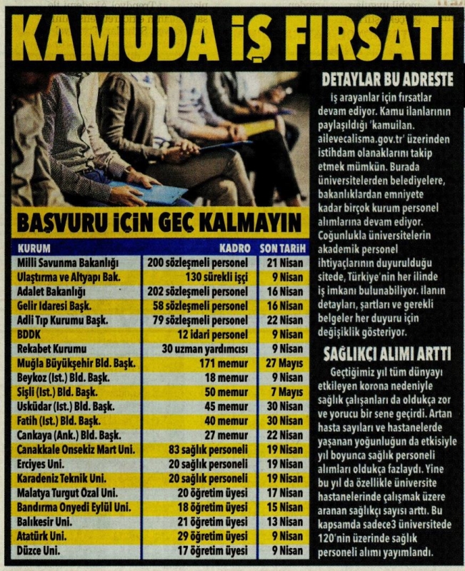 Kamuda İş Fırsatı 6.4.2021 - Posta Gazetesi
