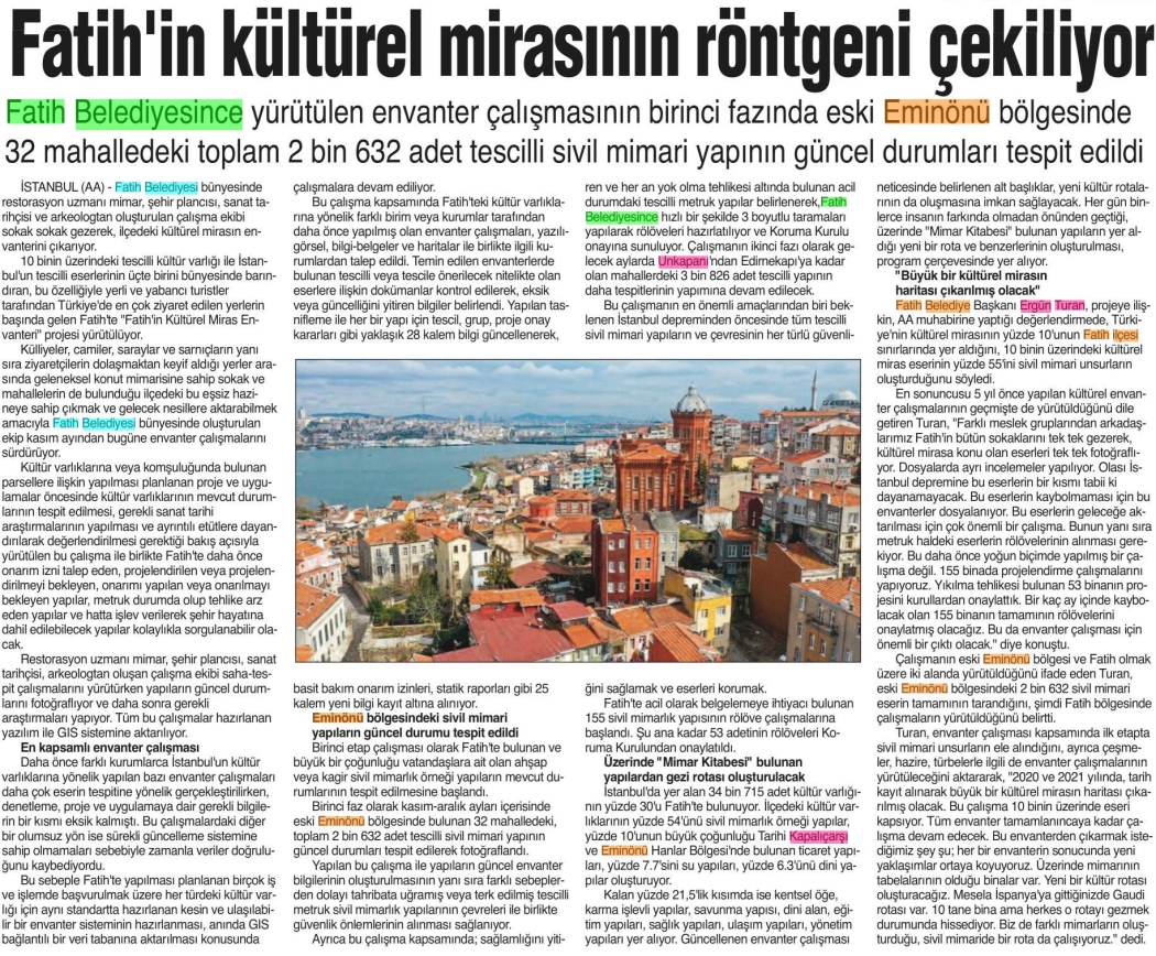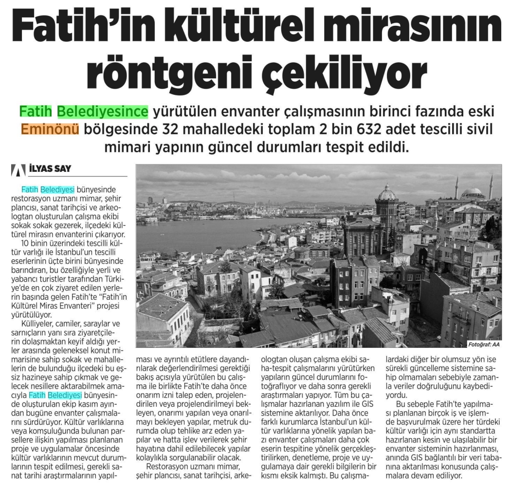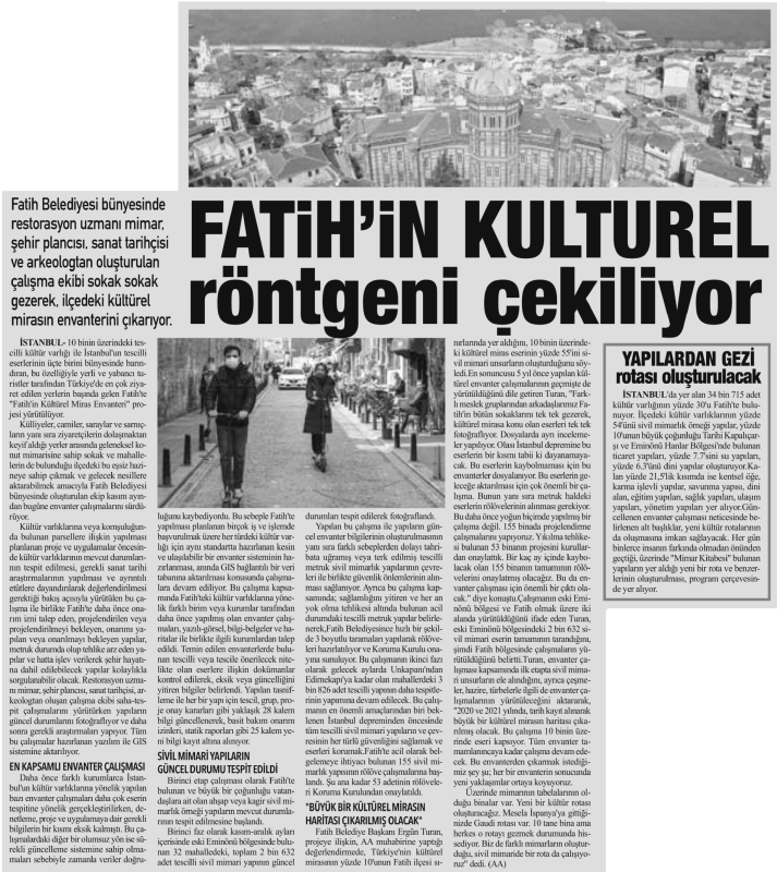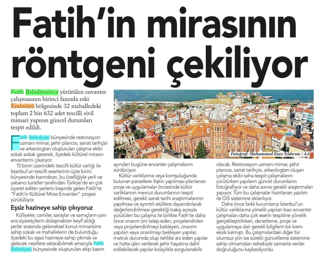 Fatih'in Kültürel Röntgeni Çekiliyor 7.4.2021 - Bizim Anadolu Gazetesi
