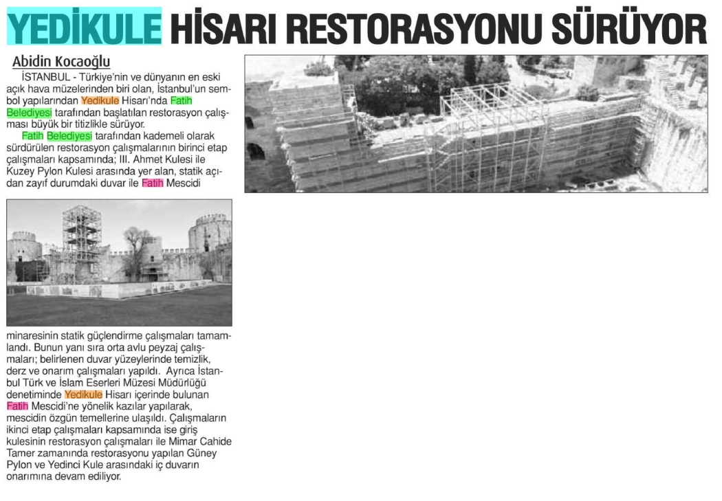 Yedikule Hisarı Restorasyonu Sürüyor 9.4.2021 - Yeni Çağrı Gazetesi