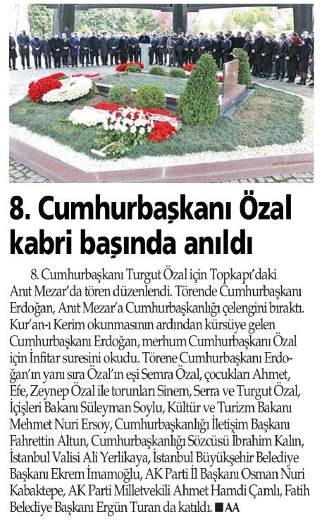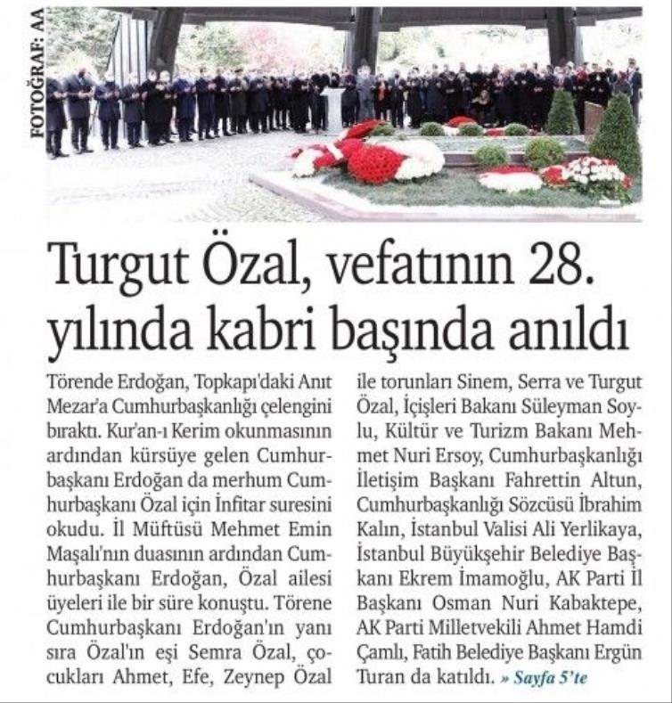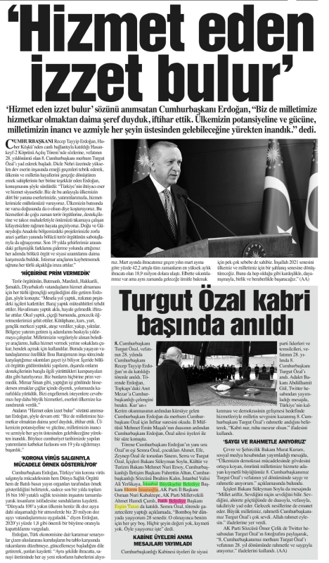 Turgut Özal Kabrinde Anıldı 17.4.2021 - Milliyet Express