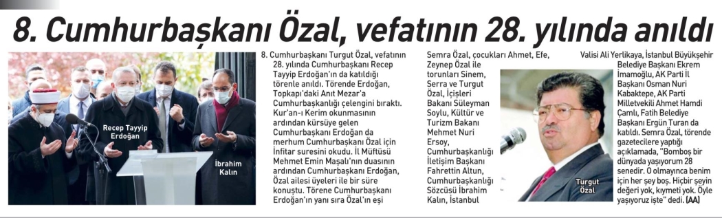 Özal Dualarla Anıldı 18.4.2021 - Yeni Şafak Gazetesi
