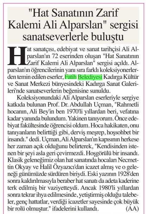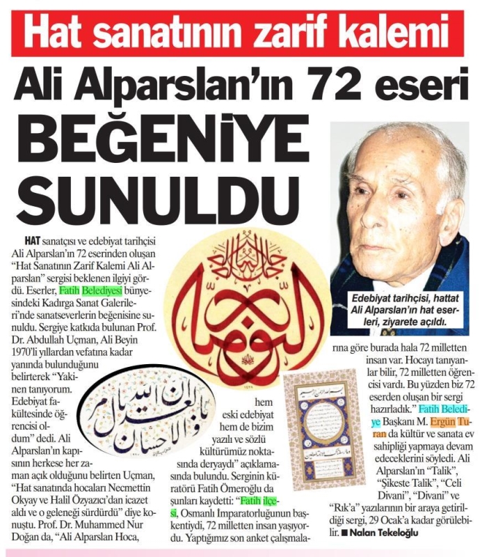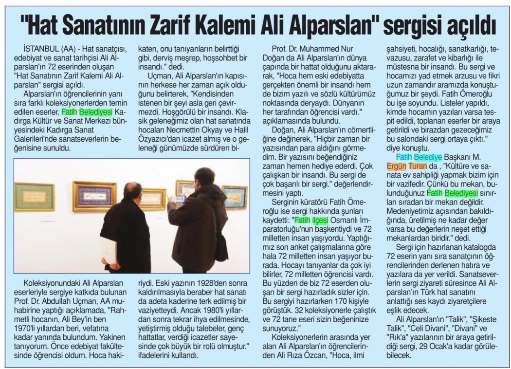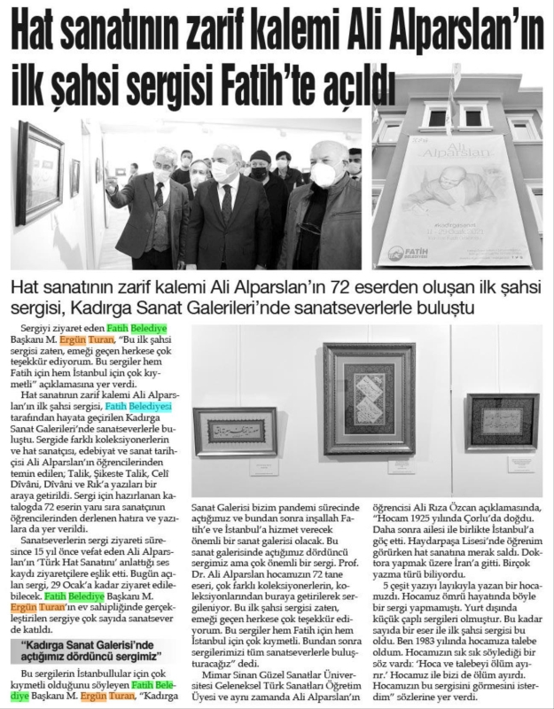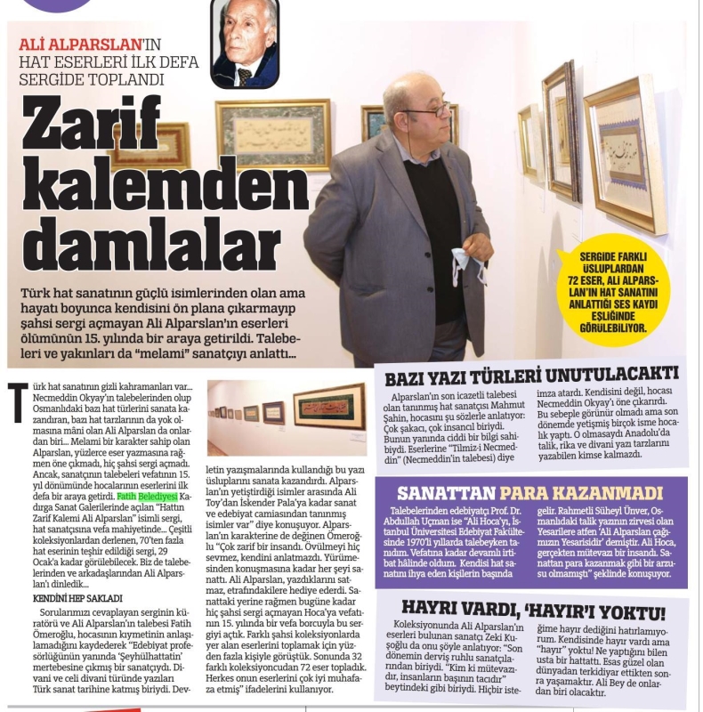 Hat Sanatının Zarif Kalemi Ali Alparslan'ın İlk Şahsi Sergisi Fatih'te Açıldı 13.1.2021 - İstanbul Gazetesi