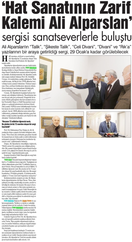 "Hat Sanatının Zarif Kalemi Ali Alparslan" Sergisi Sanatseverlerle Buluştu 13.1.2021 - Başkent Gazetesi