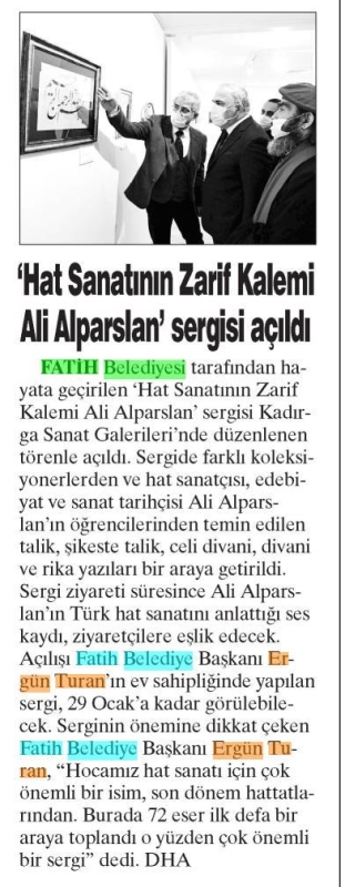 'Hat Sanatının Zarif Kalemi Ali Alparslan' Sergisi Açıldı 15.1.2021 - Günboyu Gazetesi