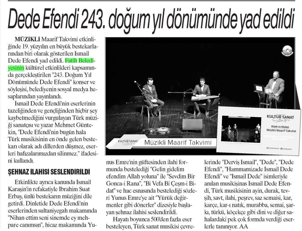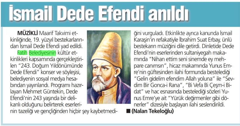 İsmail Dede Efendi Anıldı 15.1.2021 - Türkiye'de Yeni Çağ