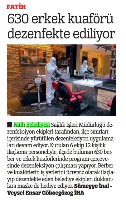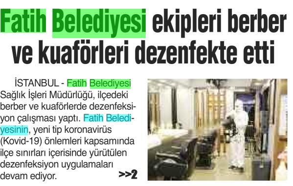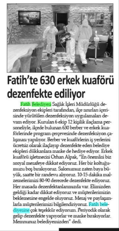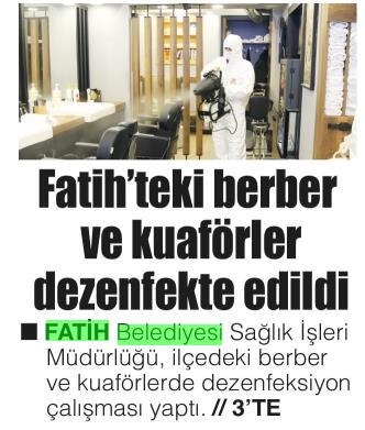 Fatih'teki Berber ve Kuaförler Dezenfekte Edildi 15.1.2021 - Yeni Gün Gazetesi