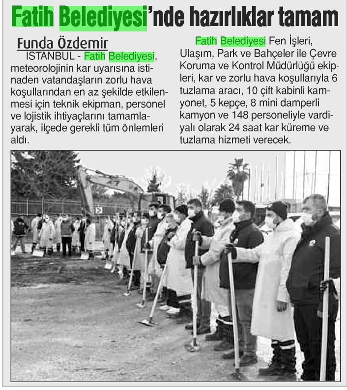 Fatih Belediyesi'nde Hazırlıklar Tamam 17.1.2021 - Yeni Çağrı Gazetesi