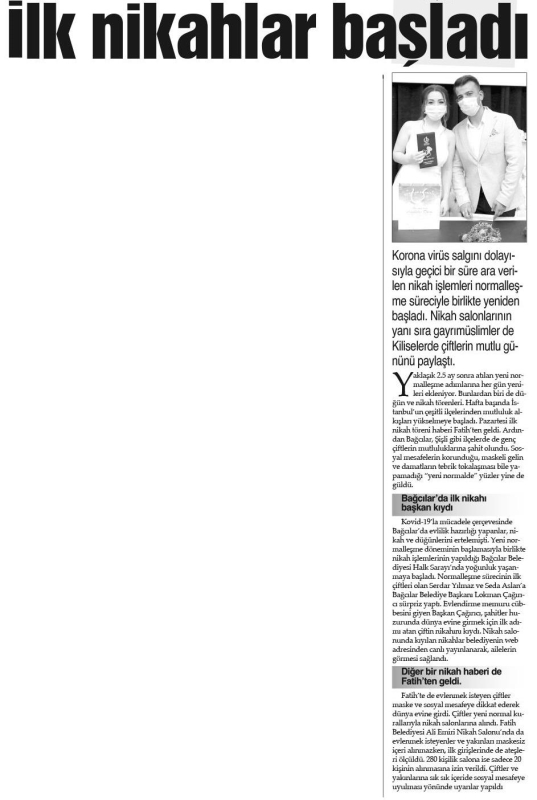 İlk Nikahlar Başladı 17.6.2020 - İstanbul Gazetesi