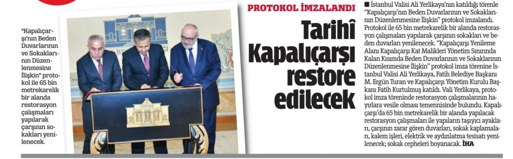 Kapalıçarşı Restorasyon Protokolü İmzalandı 30.6.2020 - Dokuz Sütun