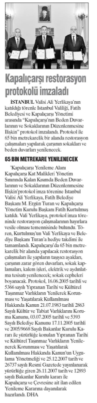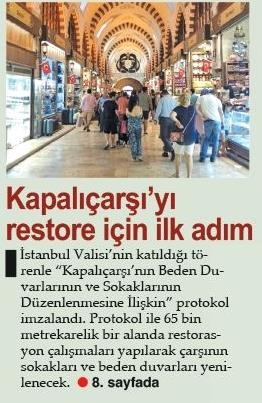 Tarihi Kapalıçarşı Restore Edilecek 27.6.2020 - Türkiye Gazetesi