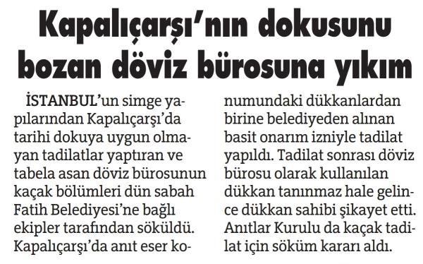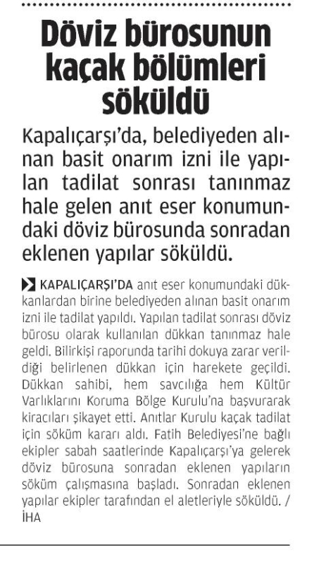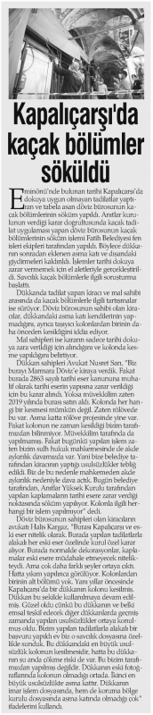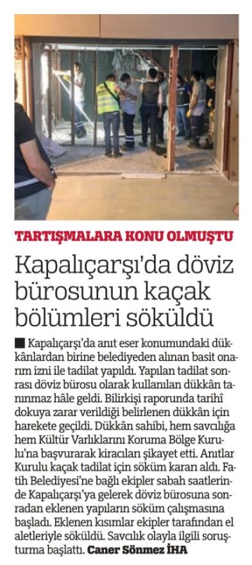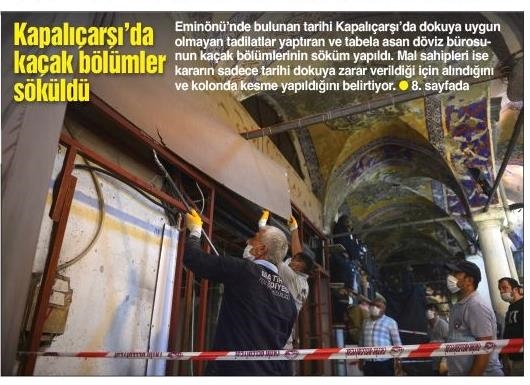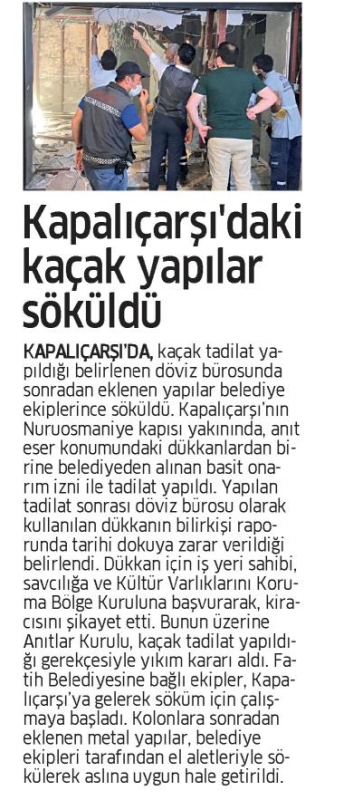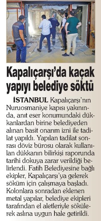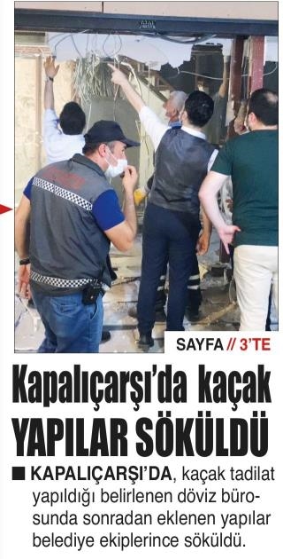 Kapalıçarşı'da Kaçak Yapılar Söküldü 30.6.2020 - Yeni Gün Gazetesi