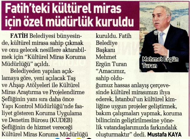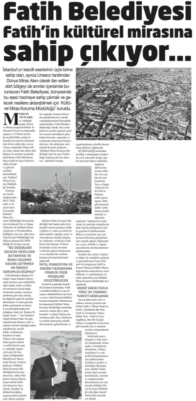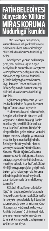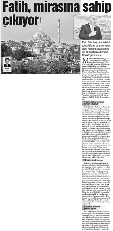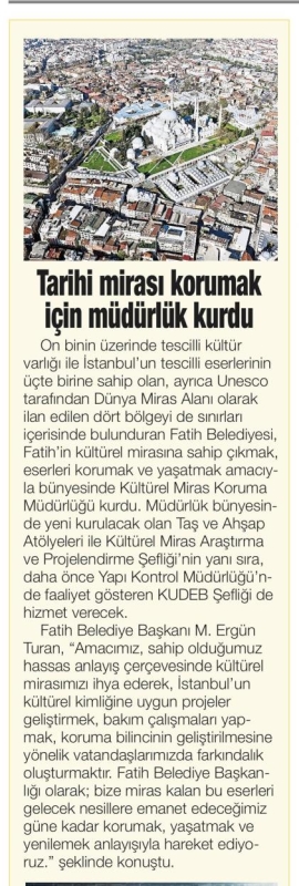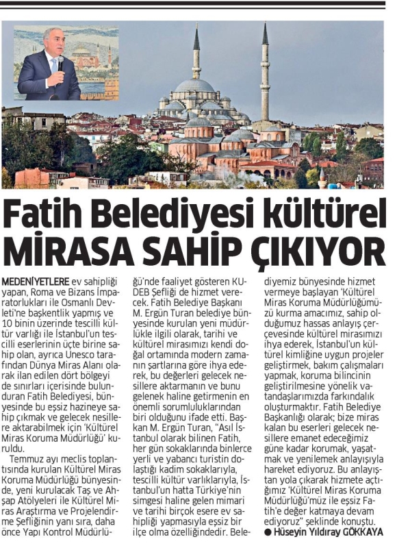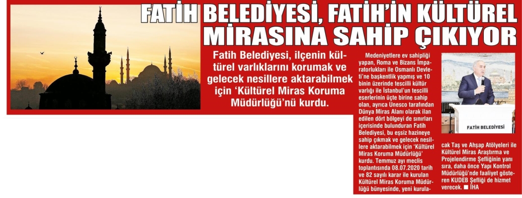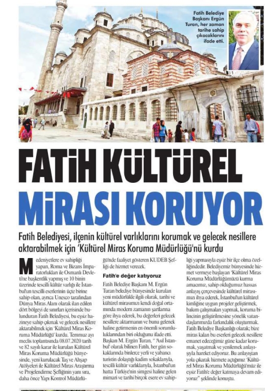 Fatih Belediyesi Bünyesinde Kültürel Miras Koruma Müdürlüğü Kuruldu 21.7.2020 - Yeni Birlik Gazetesi