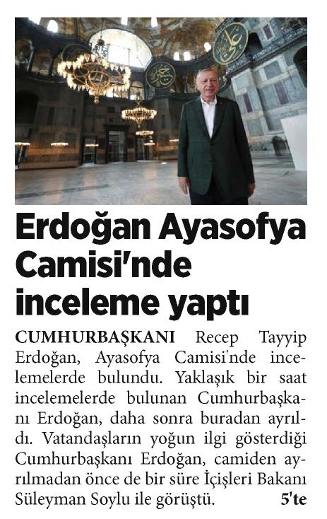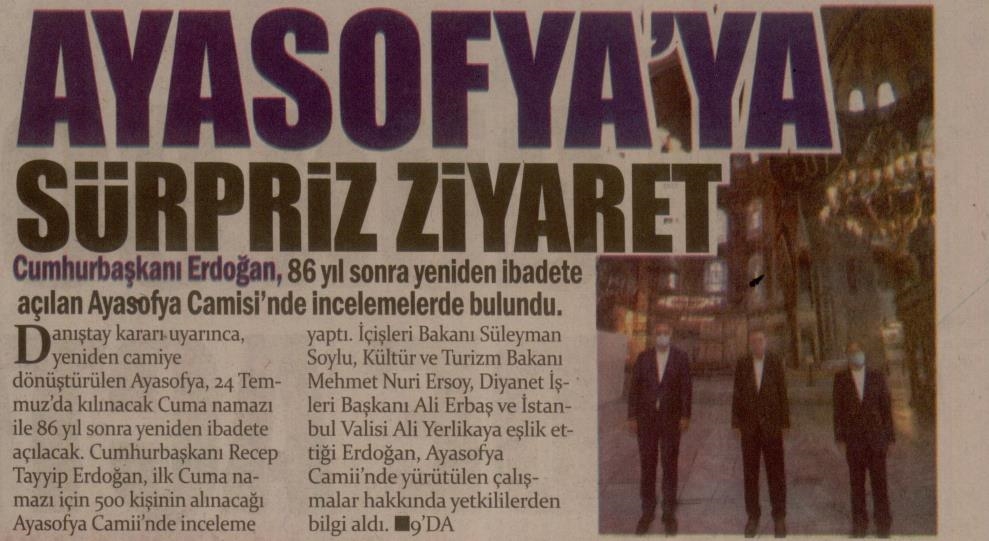 Ayasofya'ya Süpriz Ziyaret 20.7.2020 - Gazete Bursa